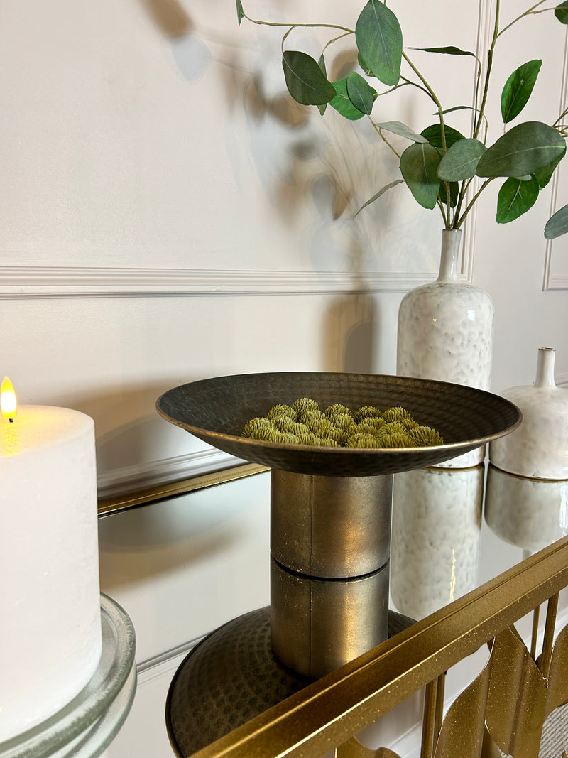 Antique Gold bronze hammered Round Metal Bowl on foot